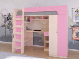 Кровать-чердак "Астра 10" дуб молочный-розовый