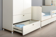 Современная и уютная мебель для детской комнаты. Скандинавские мотивы универсального цветового решения делают эту коллекцию подходящей и девочкам, и мальчикам. Все опоры - регулируемые, что позволяет легко компенсировать неровности пола.