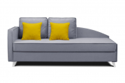 Тахта «Альфа» в современном исполнении представляет собой симбиоз всех достоинств кровати и дивана. Тахта исторически имеет более низкую посадку, что чаще встречается в восточном или азиатском интерьере. Тем не менее, такая высота достаточно удобна для большинства людей, а оригинальный внешний вид внесет изюминку в привычный интерьер. Наличие дополнительных подушек принесет дополнительное удобство в использовании. Задняя спинка обшита технической тканью. Угол исполнения тахты (правый или левый) указывается при заказе.